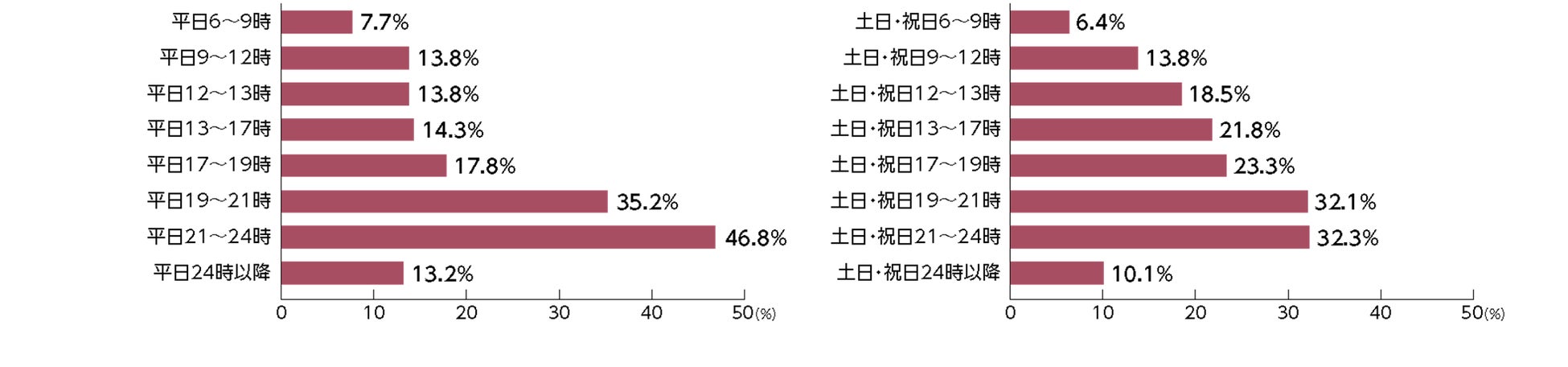 不動産ポータルサイトを見ている時間帯は「平日21~24時」が最多