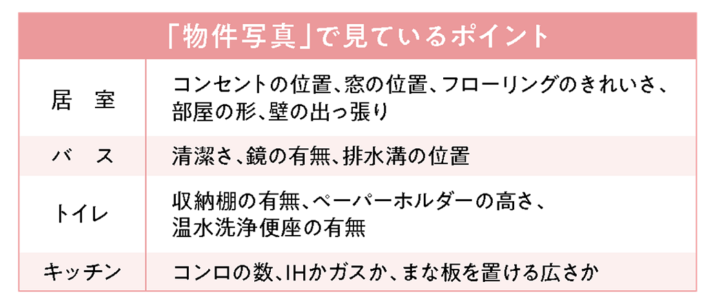Q. 不動産ポータルサイトで【居室】【バス】【トイレ】【キッチン】の画像を確認する際、どんなところをチェックしていますか?