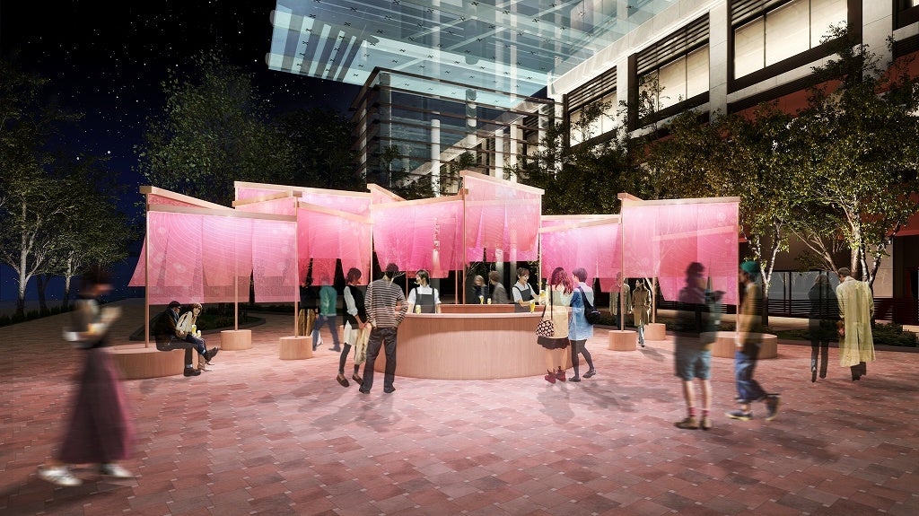 -16枚の大判のれんによる新たな花見体験「桜のれん」が初登場-日本橋の老舗の食や名品が集う「ニホンバシ桜屋台」が4年ぶりに復活
