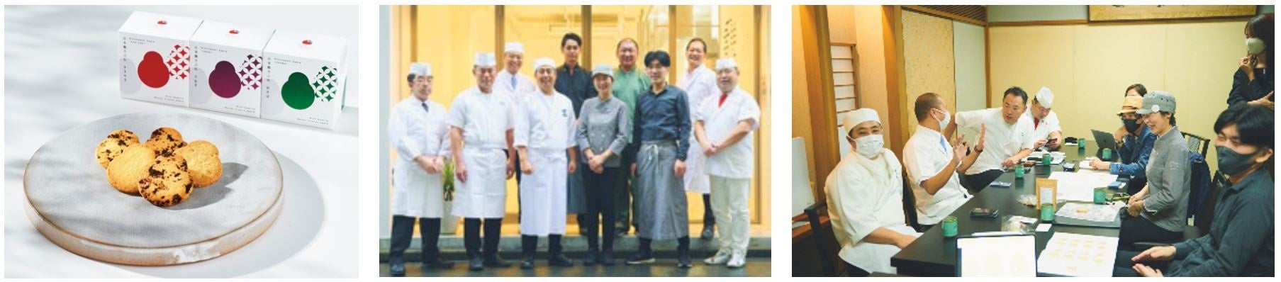日本橋料理飲食業組合の青年部「三四四会」と、2021年に日本橋大伝馬町にオープンしたパティスリー「Hiromi & Co.」のコラボレーションで、日本橋伝統の味と合わせたフランス製法のサブレが誕生。おそば・うなぎ・すきやき、という3種類の和食をテーマにした焼き菓子は、新感覚の美味しさです。