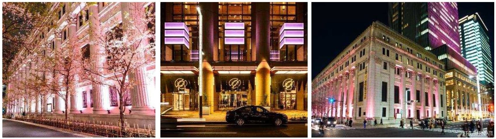 中央通り沿いに並ぶ重要文化財や、大型ビル、日本橋の桜の名所のひとつである「江戸桜通り」が桜色にライトアップ。日本橋の街全体が桜色に染まります。ぜひお楽しみください。