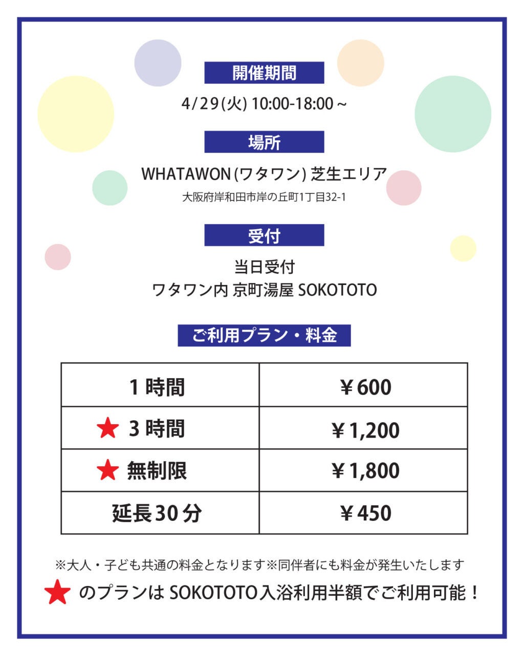 特典:3時間プランまたは無制限プランのご利用で、「京町湯屋SOKOTOTO」の入浴料が半額