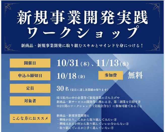 【埼玉県】「新規事業開発実践ワークショップ」の参加者を募集します!