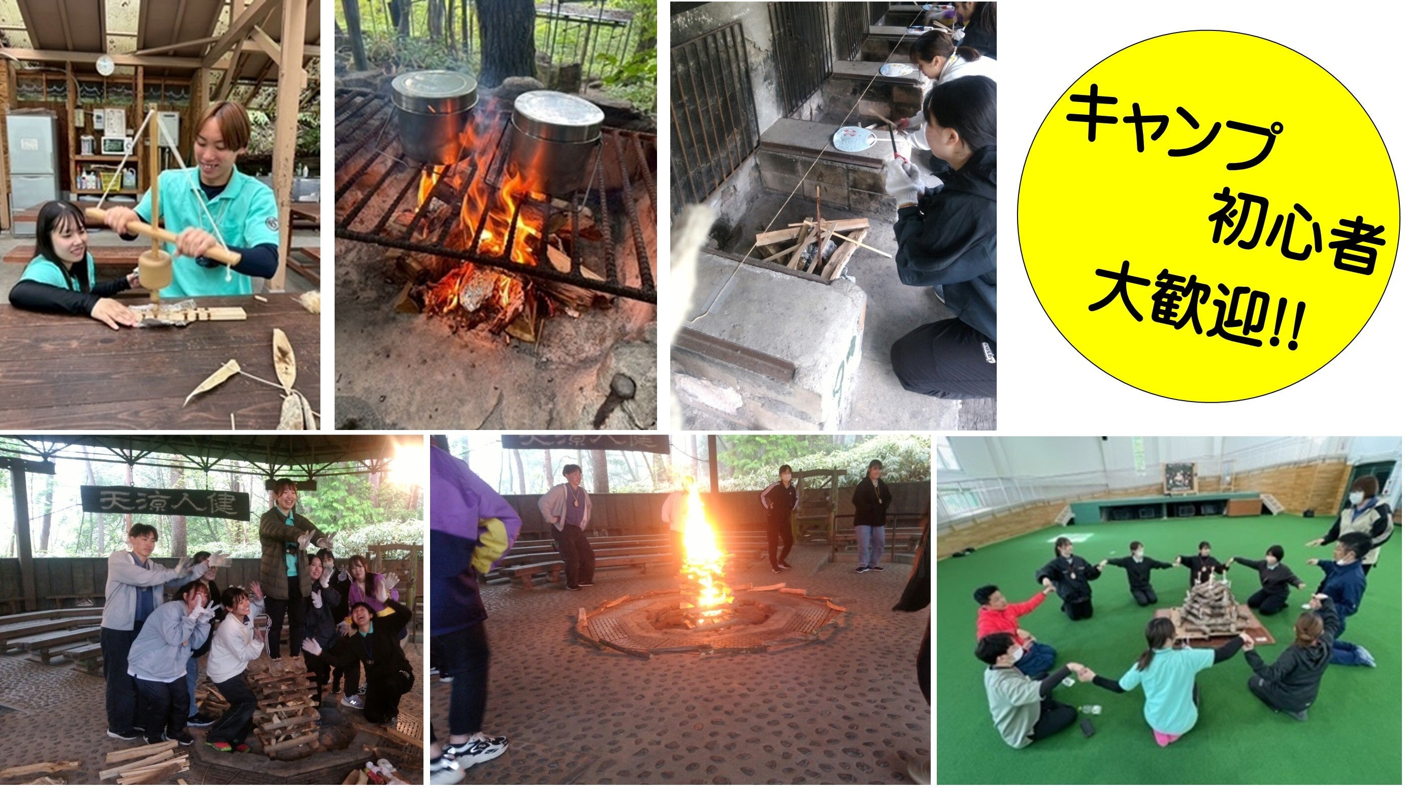 センターで勤めているキャンプ補助員(大学生)たちと一緒にキャンプで使えるテクニックやキャンプファイヤーの楽しみ方を教わりませんか?センターの所員が楽しく丁寧に指導します。