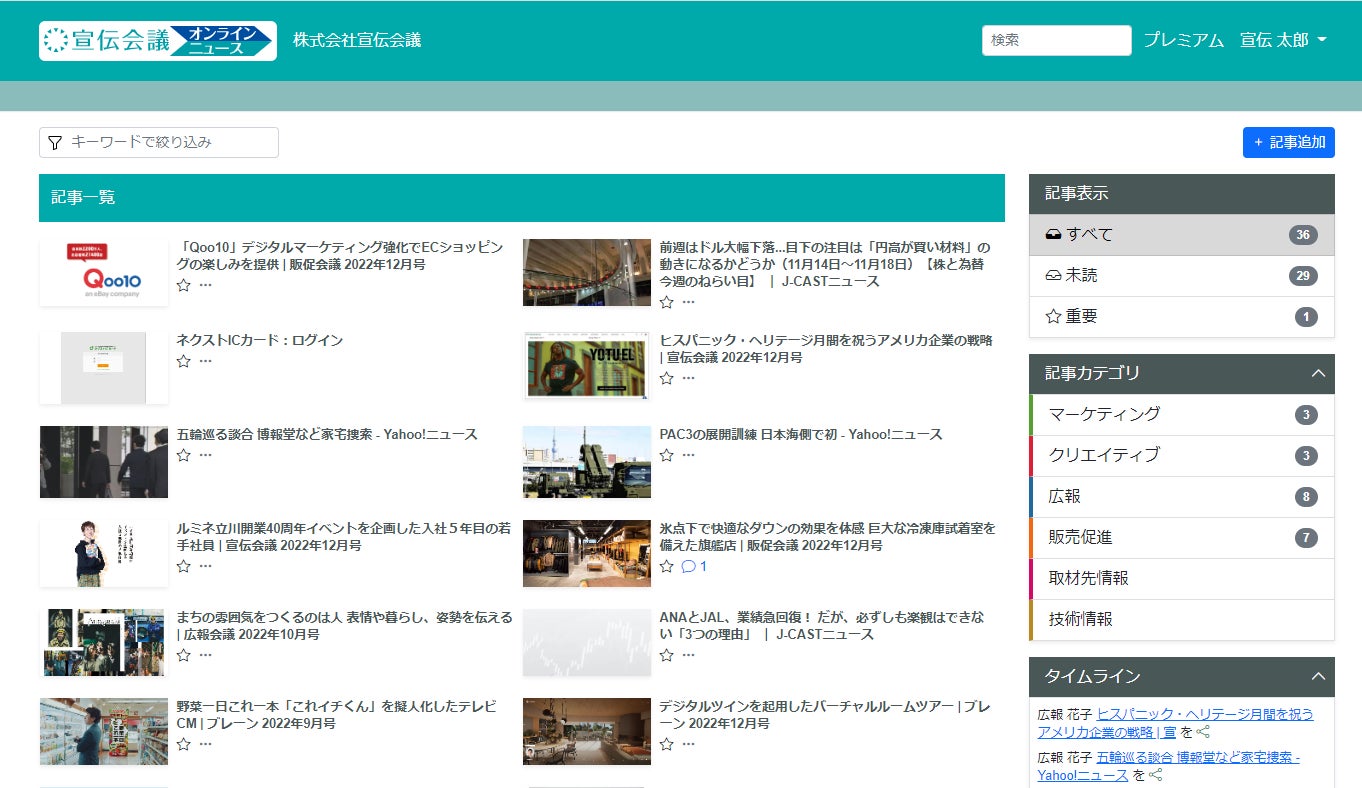 マーケティング、コミュニケーション、クリエイティブに特化した出版ならびに教育事業を展開する株式会社宣伝会議(本社:東京都港区)は、2022年12月1日より法人向けの「ナレッジシェアサービス」である「宣伝会議オンラインニュース for BUSINESS」の提供を開始しました。