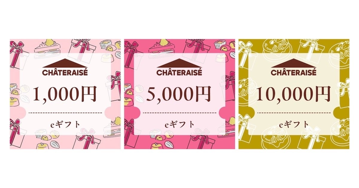 「シャトレーゼeギフト」は、「シャトレーゼ」の公式オンラインショップ限定でご購入および利用可能なデジタルチケットで、同オンラインショップでのお会計時に金券としてご利用いただけます。1,000円から20,000円までの券種をご用意しており、券面デザインは通年でどなたにでも贈っていただけるものに加え、イベントや季節に合わせたタイプもご用意しております。「シャトレーゼ」公式オンラインショップで購入したギフトは、ご家族やご友人にLINEやメールなどでお贈りいただけます。