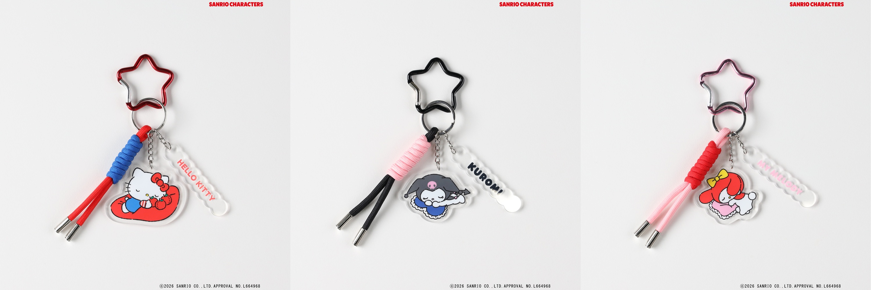 カラー:全3色 / レッド(ハローキティ)・ブラック(クロミ)・サックス(シナモロール)