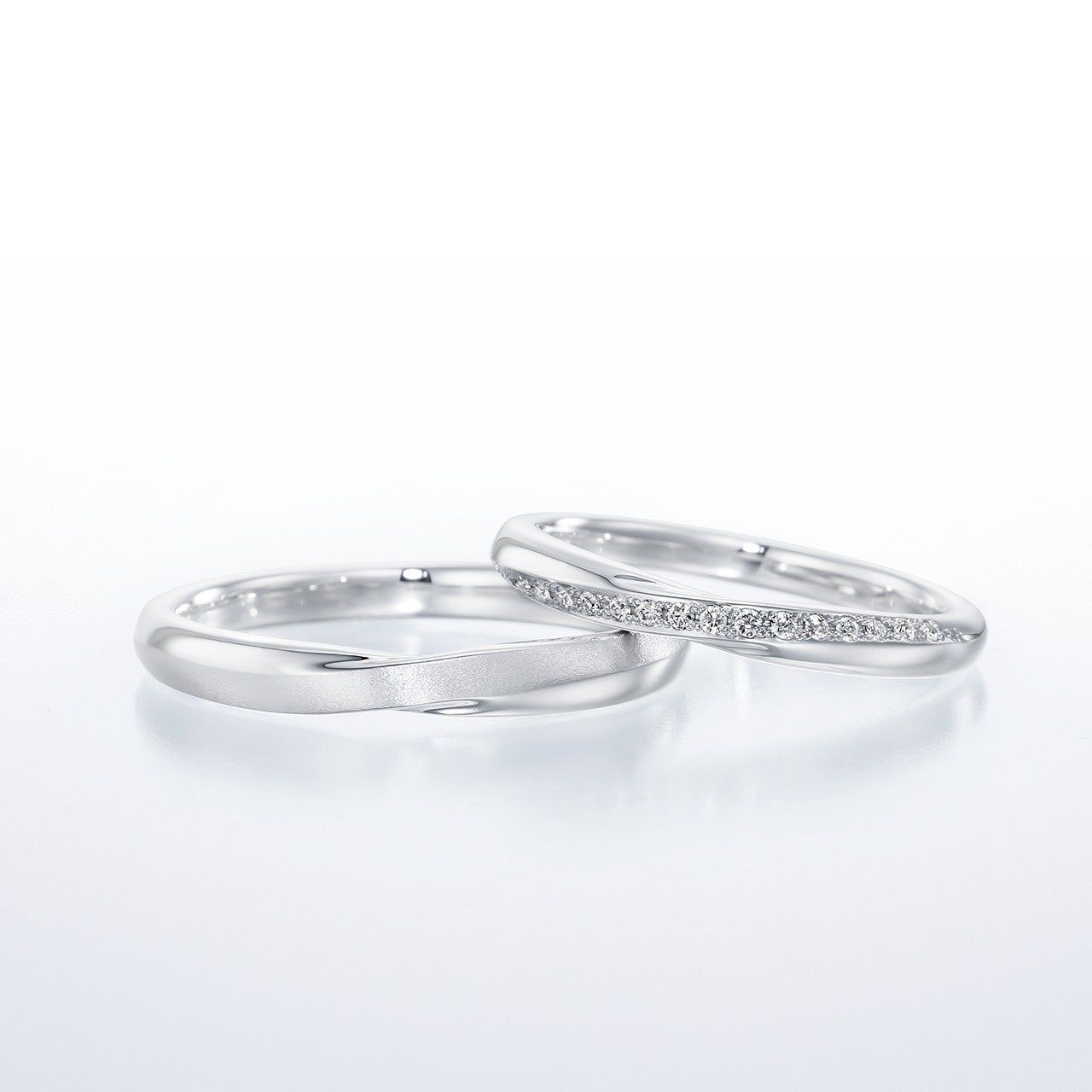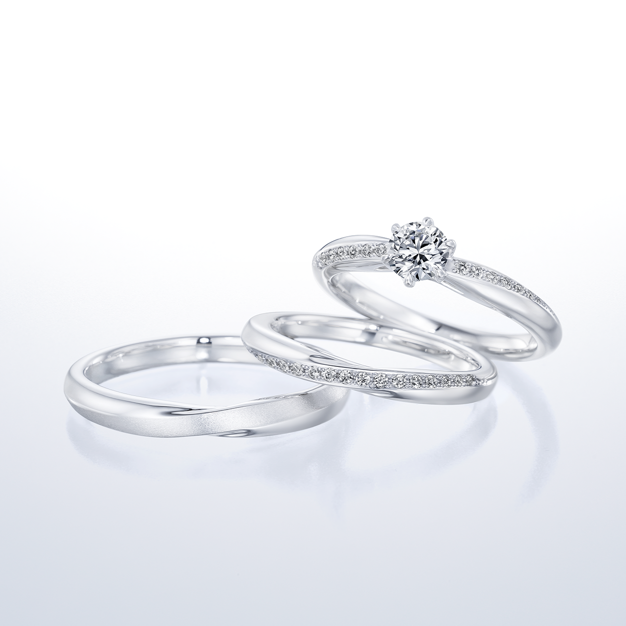 婚約指輪(エンゲージリング)と結婚指輪(マリッジリング)を重ねてつける「セットリング」も業界の先駆けとなっています。なめらかな着用感、サイドからみた美しさも細やかな手仕事がなすさらなる特徴です。