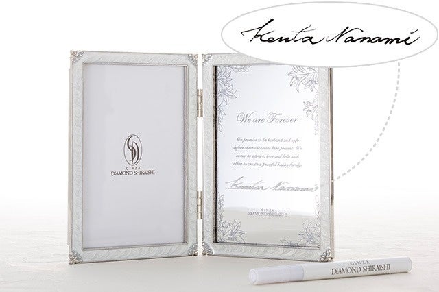 大切なワンシーンと、誓いの言葉を記した結婚証明書をふたりの大切な想い出として飾ることができます。ブライダルシーンに華を添える品の良いデザインでありながら、インテリアにもマッチするよう仕上げました。(ふたりの名前を書き込める専用のペンが付属しています。)