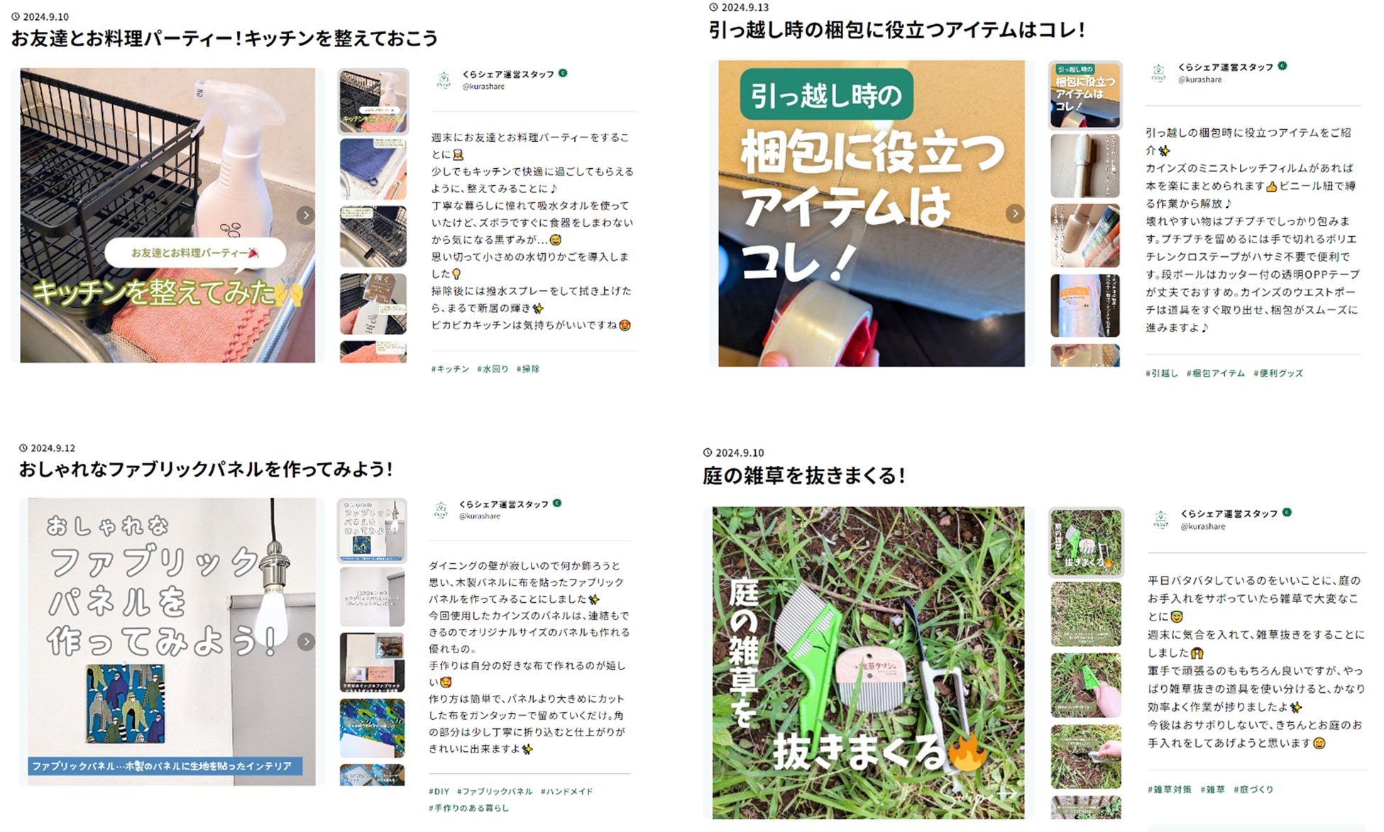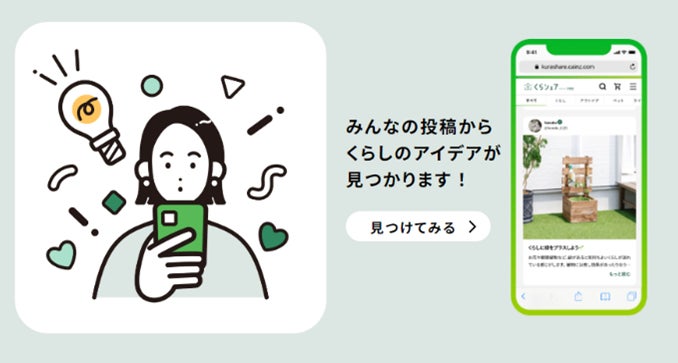 株式会社カインズ(本部:埼玉県本庄市、代表取締役社長 CEO:高家 正行)は、みんなの投稿を通じてくらしのアイデアを共有し、くらしをもっと楽しく、もっと豊かにするカインズの新しいオンラインサービス「くらシェア」を2024年9月18日(水)から開始しました。