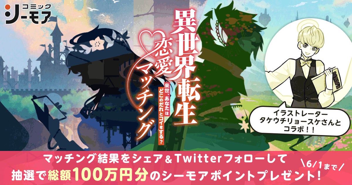 あなたの理想の関係を思い浮かべながら質問に回答して、新しい恋の物語を始めてみましょう!マッチング診断結果が出たらTwitterで「#異世界転生恋愛マッチング」「#コミックシーモア」のハッシュタグをつけてシェアしてください。