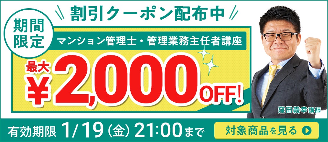 マンション管理士・管理業務主任者講座 期間限定クーポン