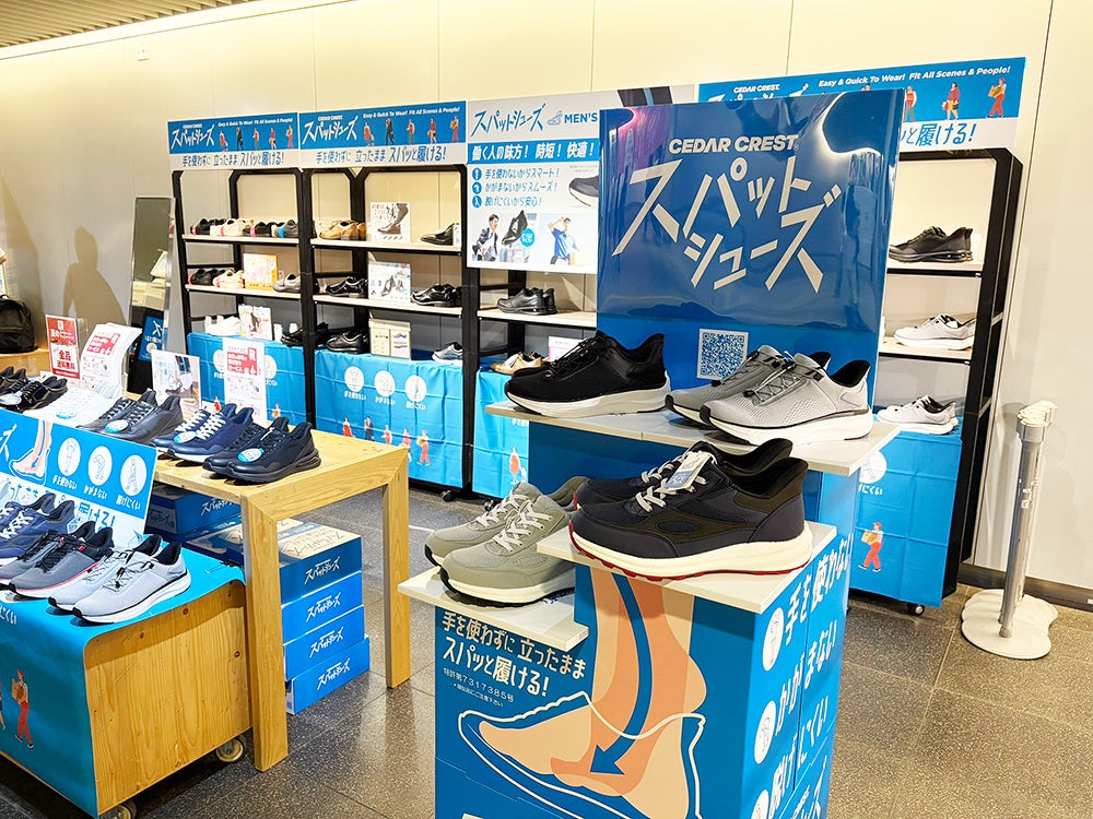 手を使わずに立ったままスパッと履ける「スパットシューズ」は、発売以来、便利さと履きやすさでお客様の高いご支持をいただき、シリーズ累計販売足数341万足(※1)を突破いたしました。新感覚の履き心地を体験できるスパットシューズのポップアップストアを、1日の通行量が9万人(※2)と言われる札幌駅前通地下広場で開催いたしました。