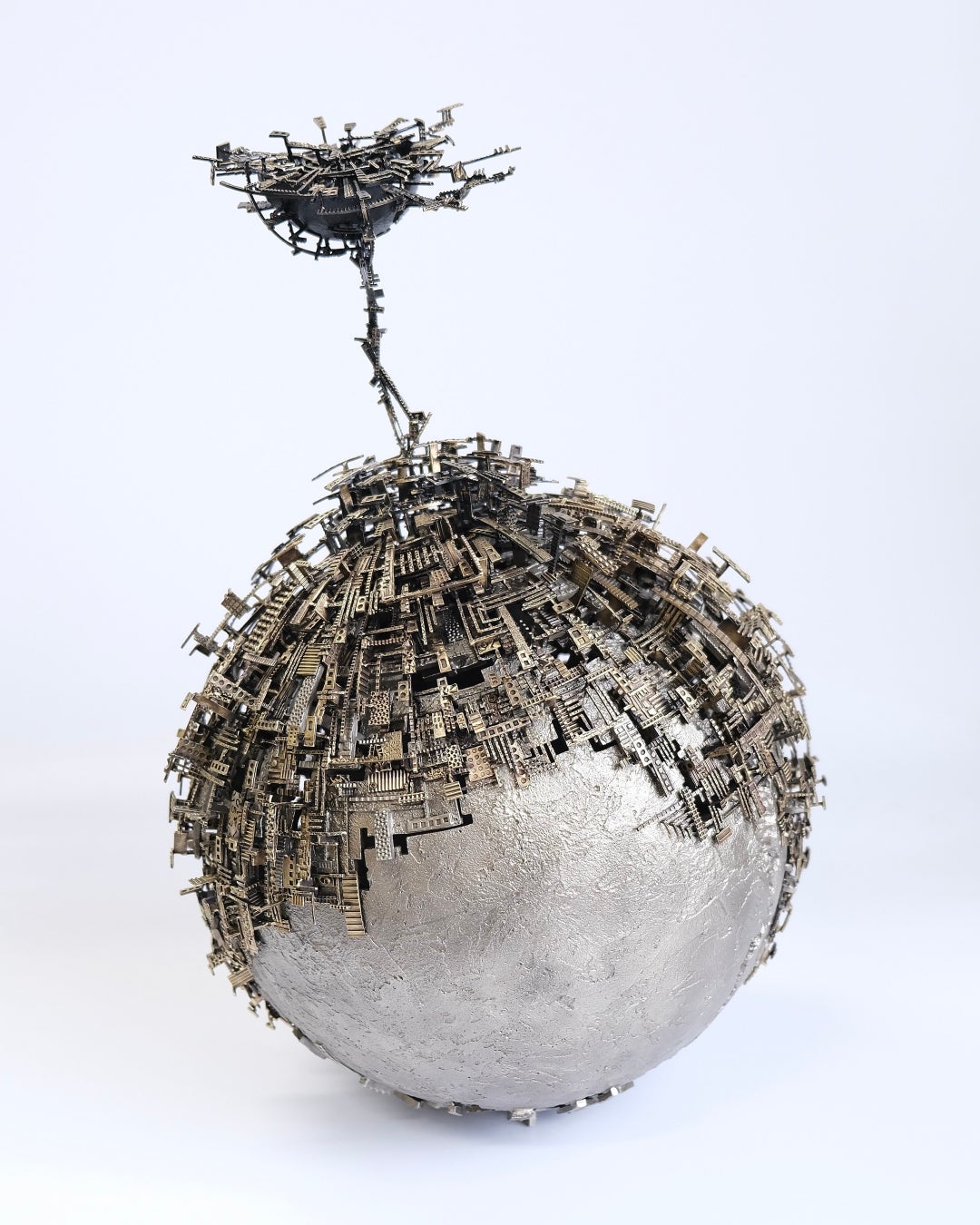 1983年生まれ。2010年に東京藝術大学大学院美術研究科工芸専攻(鋳金)修士課程を修了。現在は東京を拠点に制作活動を行う。ロストワックス鋳造技法を用いて、精緻で構築的な造形作品を制作している。ロストワックスとは、蝋で成形した精密な形態を金属に置き換える鋳造法であり、久野の作品は硬質で重厚な素材感の中に、繊細で高密度なディテールを宿す。主に「都市」をテーマとし、増殖し続ける都市構造や、複雑に絡み合う現代的景観のイメージをモチーフに、金属という素材を通して動的かつ緻密な造形美を追求している。近年の主な展覧会に「奥能登国際芸術祭2020+」(2021年)、「第5回金沢・世界工芸トリエンナーレ」(2022年)など。SHIBUYA AWARDS大賞(2016年)、佐野ルネッサンス鋳金展奨励賞(2017年)ほか受賞多数。