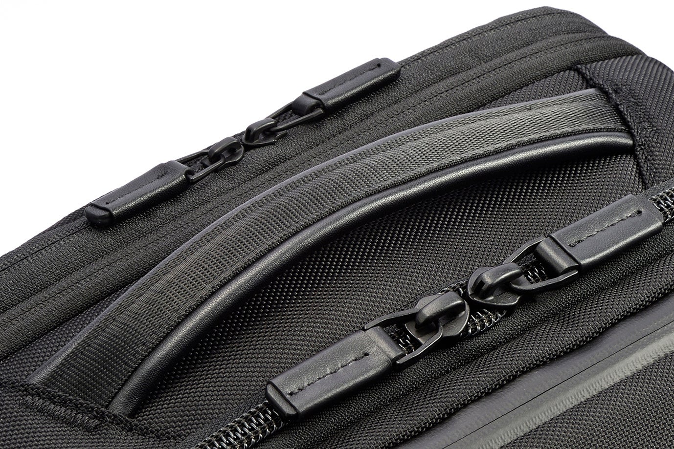 そこで、本体素材にビジネスバッグらしい太番手のナイロンを使用しながらも、カジュアルファッションにも合わせやすいオンオフ兼用デザインに仕上げました。