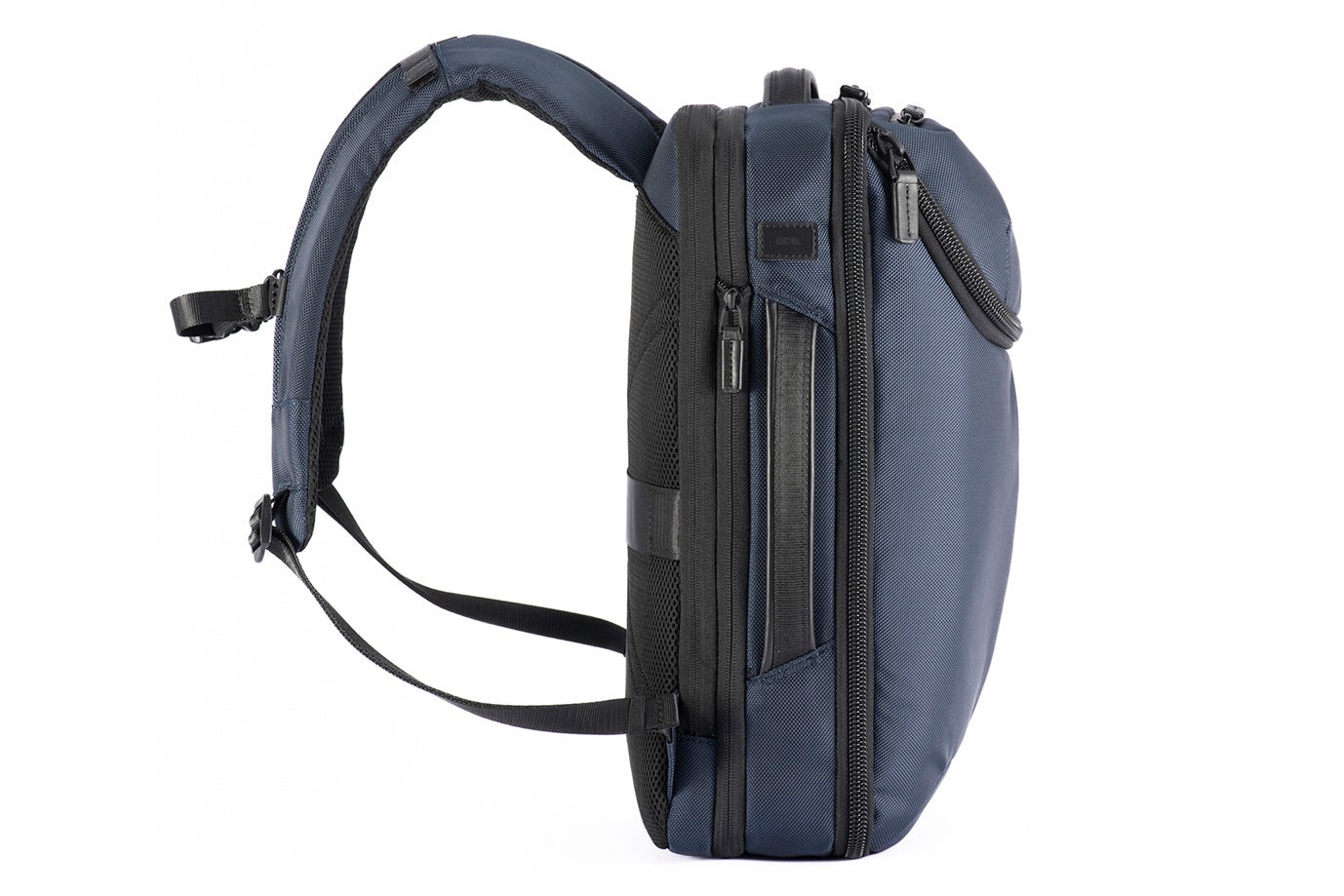 「デュアルポーズ」は、ワーケーションなど、ノマドワークでの使用シーンを想定し、オン用のビジネスツールもオフ用の荷物も機能的に収納できる仕様と、どんなシーンにもフィットするデザインにこだわりました。