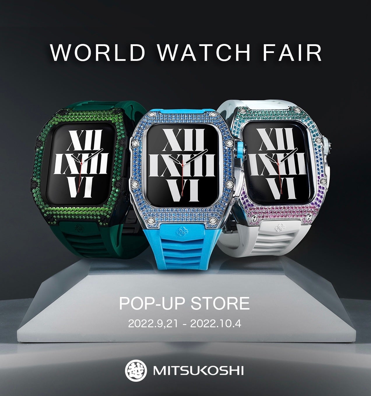 9月21日に名古屋栄三越にて開催される、約50ブランドが集結する国内最大の時計の祭典「第24回 2022 三越 ワールドウォッチフェア」にゴールデンコンセプトのポップアップストアがオープンいたします。名門ブランドの数々の時計が一同に揃う祭典に、「高級Apple Watchケース」という新たなジャンルを築いた「ゴールデンコンセプト」の登場で高級時計市場におけるニーズの一つ「ステータス」にも一石を投じます。