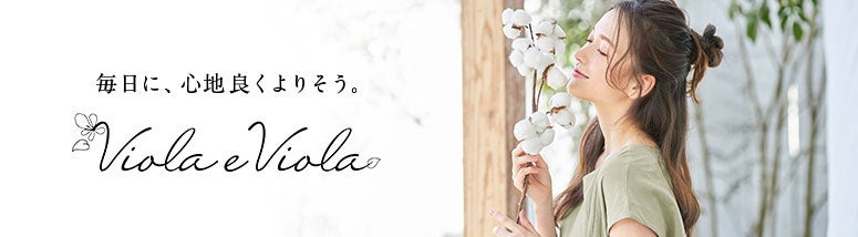 Viola(スミレ)の花言葉は、「小さな幸せ」。Viola e Violaは、“日常の小さな幸せと笑顔がたくさん重なるように”という想いを大切にしています。トレンドを追いかけるよりも、自分の気に入ったものを着てあなたらしく過ごせるように、暮らしに寄り添うブランドです。