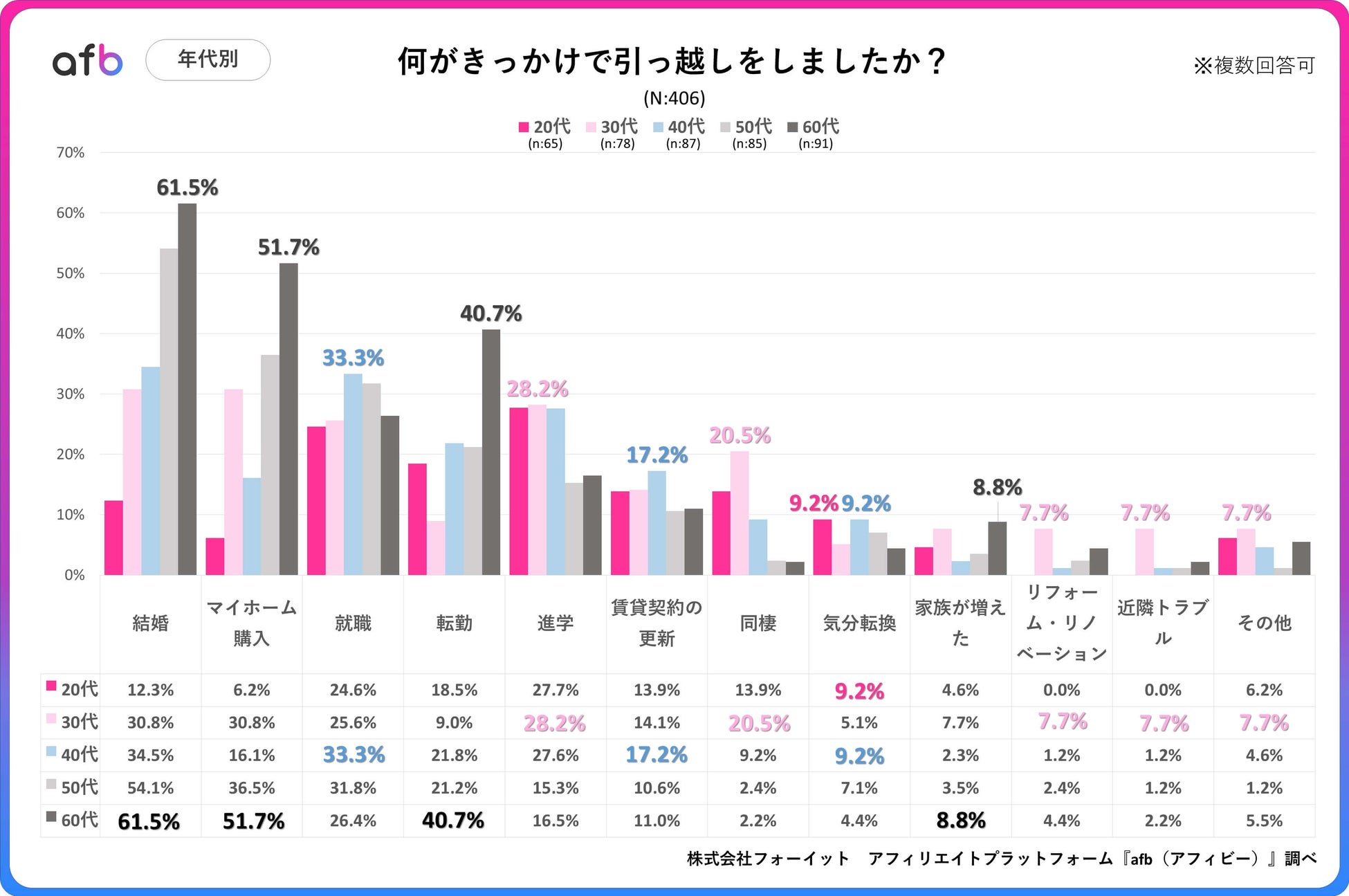 年代別で異なる引っ越し理由、60代ではライフイベント経験数が影響