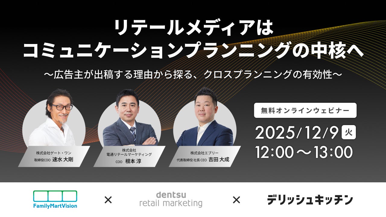 リテールメディアはコミュニケーションプランニングの中核へ。 『デリッシュキッチン』×『FamilyMartVision』 × 電通リテールマーケティング社 共催ウェビナーを開催。