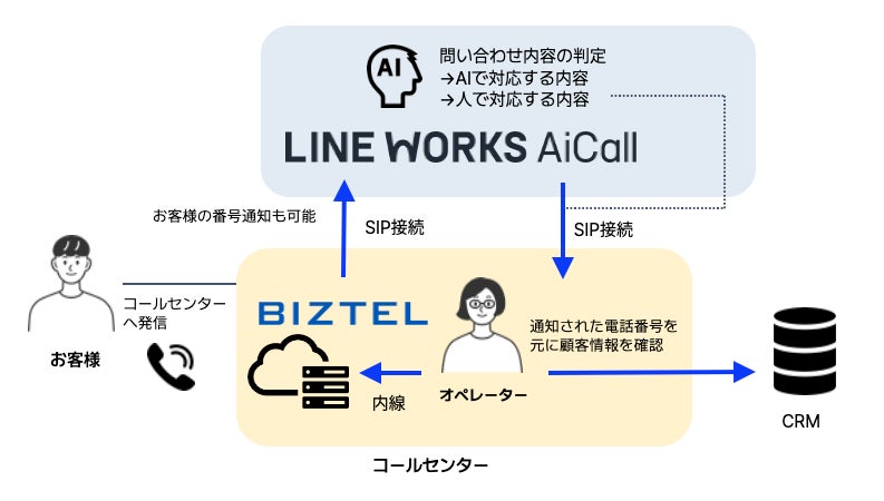 電話応対AIサービス「LINE WORKS AiCall」とクラウド型 CTI /コールセンターシステム「BIZTEL」が連携開始