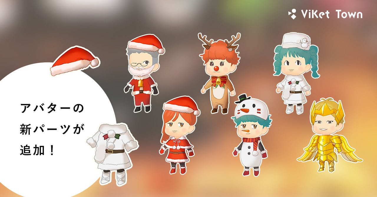 今回はシーズンに合わせて、サンタクロースやトナカイや雪だるま風のお洋服、黄金に輝く鎧パーツなどクリスマスにぴったりのアバターパーツが多数追加されます。