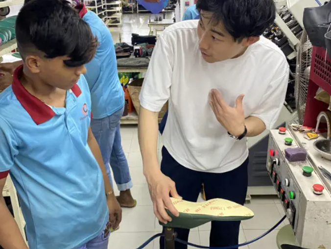 株式会社インターナショナルシューズの上田さんに工場までお越しいただき、技術的な助言から機械の配置まで細かくサポートいただいたおかげで、品質や生産体制の向上に繋がっています。また、シューズに関して日本のお客様はどういったところに特にこだわりを持っているのかや満足される品質とはどういったものなのかを細部まで教えていただき、工場の職人たちの自信にも繋がっています。今後もご助言をいただきながら改善を重ね、より質の高い商品を日本のお客さまにお届けするだけでなく、より多くのバングラデシュの困っている人たちに安心して生活できる環境を提供していきたいと思います。