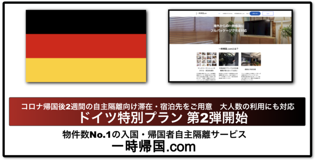 入国・帰国者受入数No.1の一時帰国.com、ご好評につきドイツからの入国・帰国者向け滞在プランを開始(羽田/成田/関空からの送迎付き)