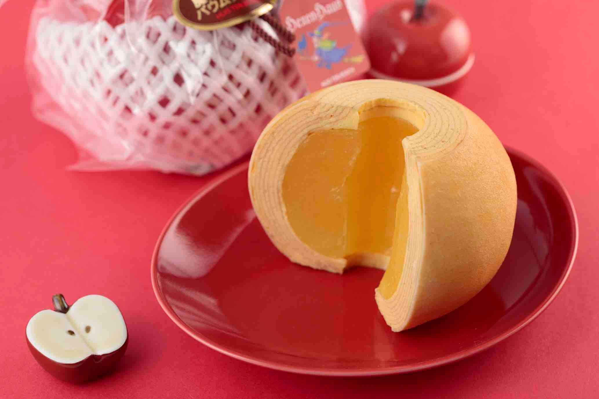 りんごを丸々1個包み込むように焼き上げたバウムクーヘン。※数量限定