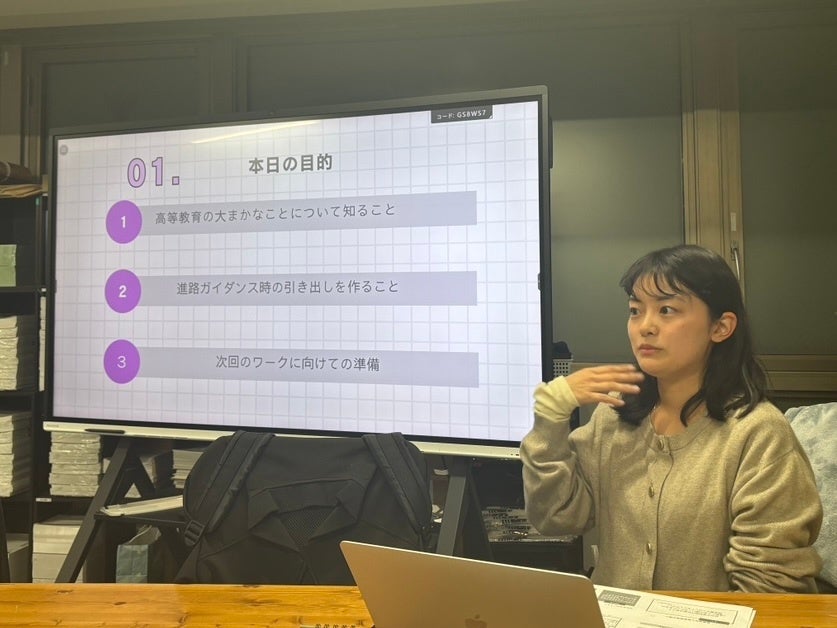 今回のテーマは「高等教育について」。太田さんは、大学時代に学んだ高等教育に関する知識を基に、わかりやすい事例やデータ、ディスカッションを交えながら講義を行いました。