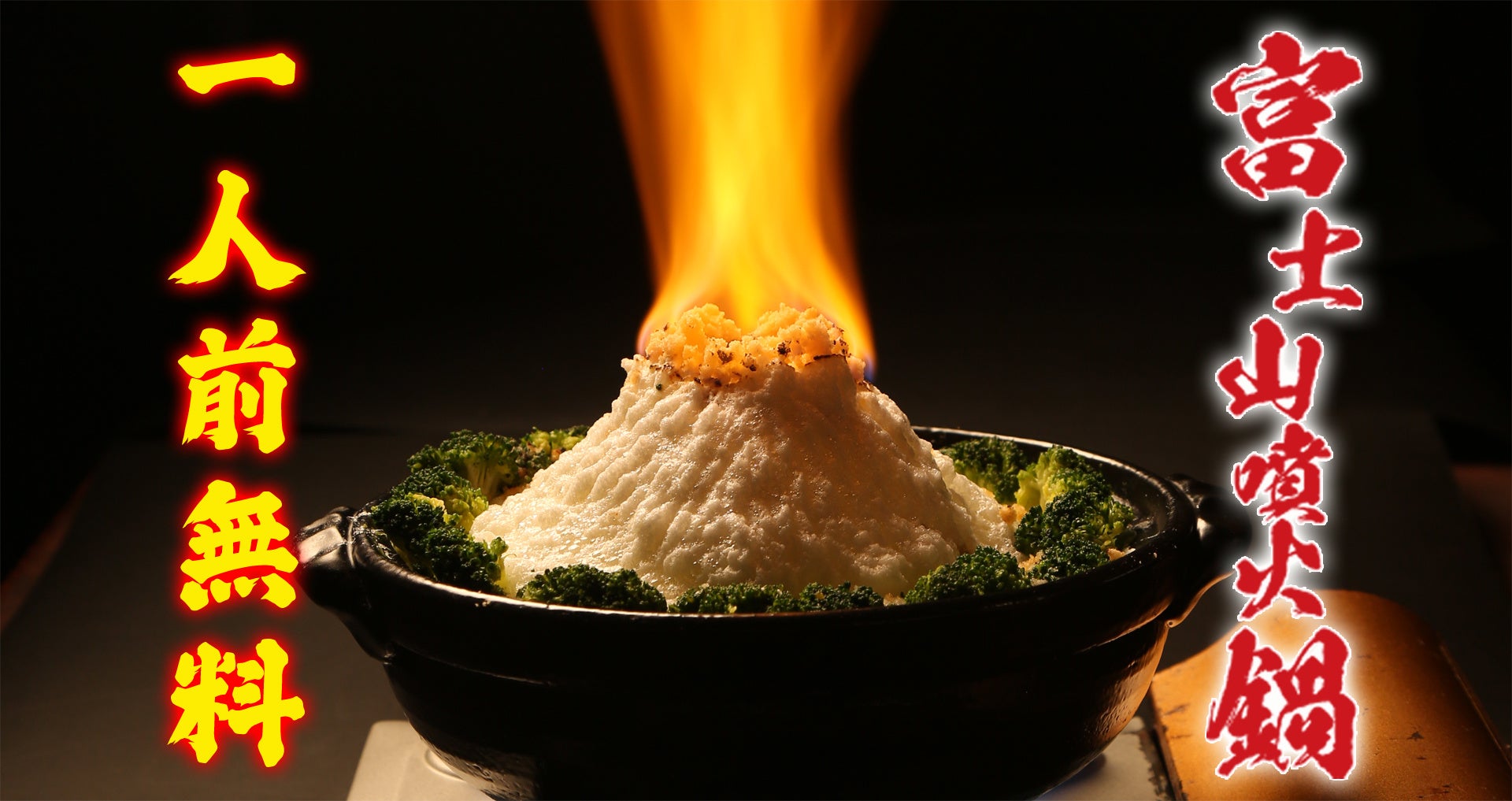 メニューリニューアル記念!!衝撃の富士山噴火鍋1人前無料でご提供♪
