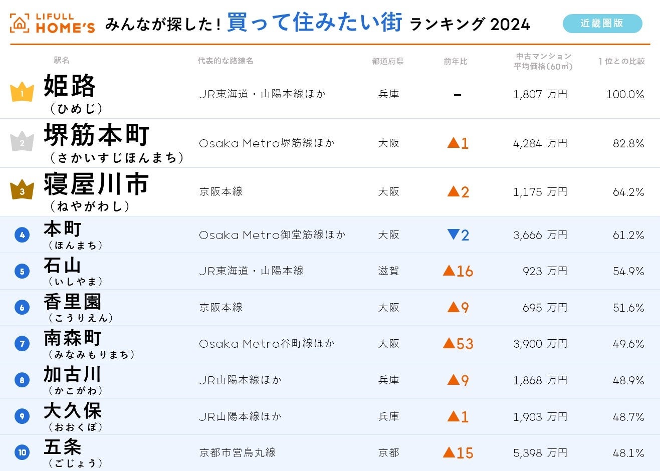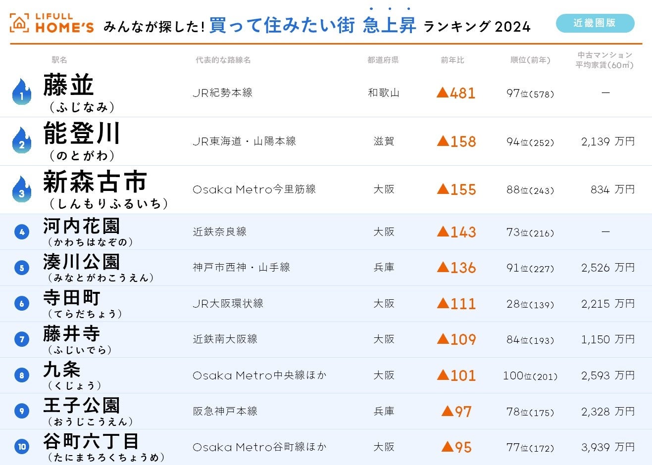 <近畿圏版>2024年 LIFULL HOME'Sみんなが探した!住みたい街ランキング
