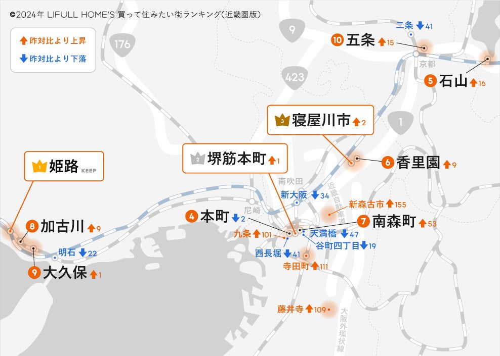 ※ 前回までは大阪、兵庫、京都を対象としていましたが、今回から滋賀、奈良、和歌山を追加しています。またそれに合わせて昨年順位を再集計しています。