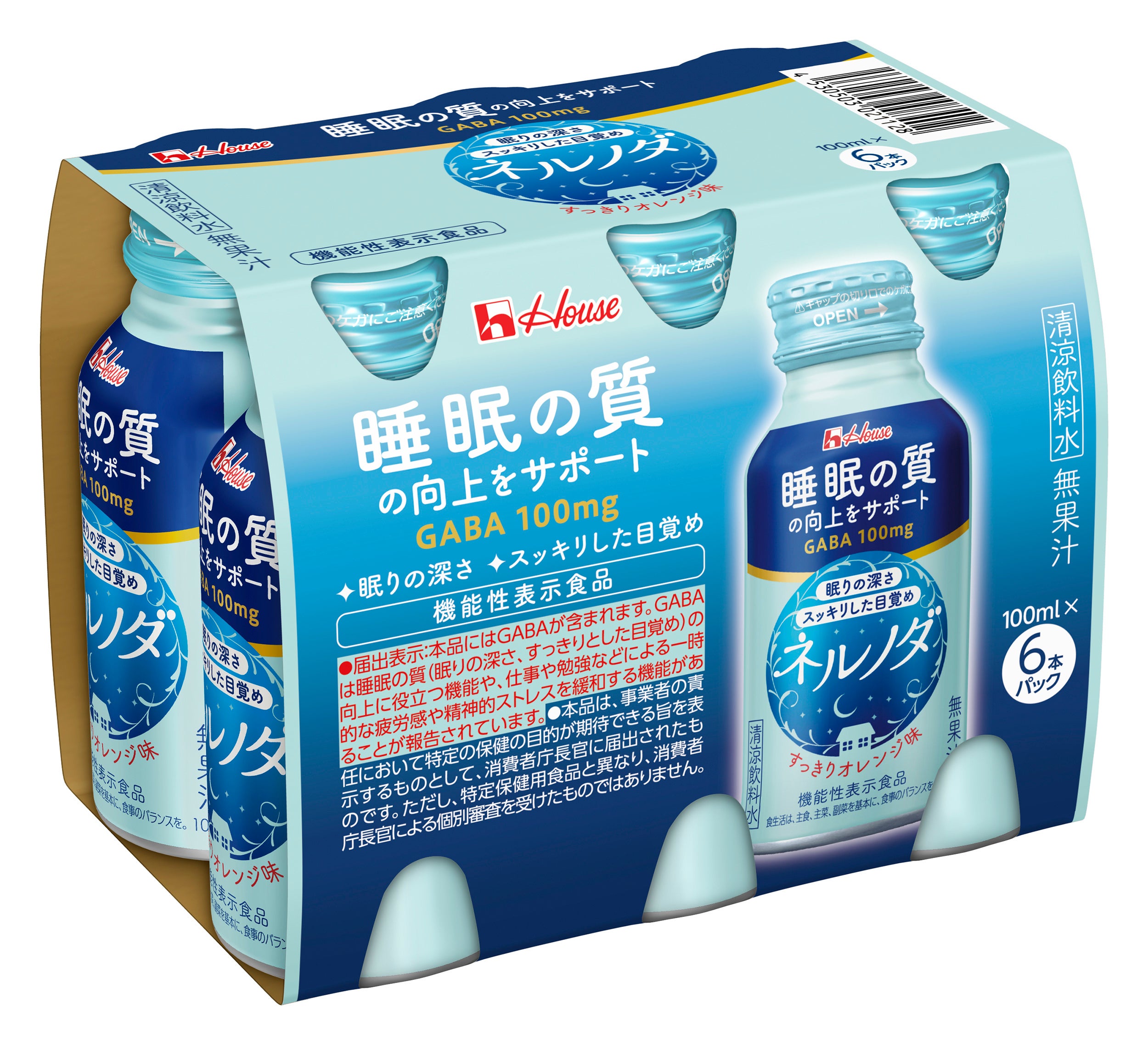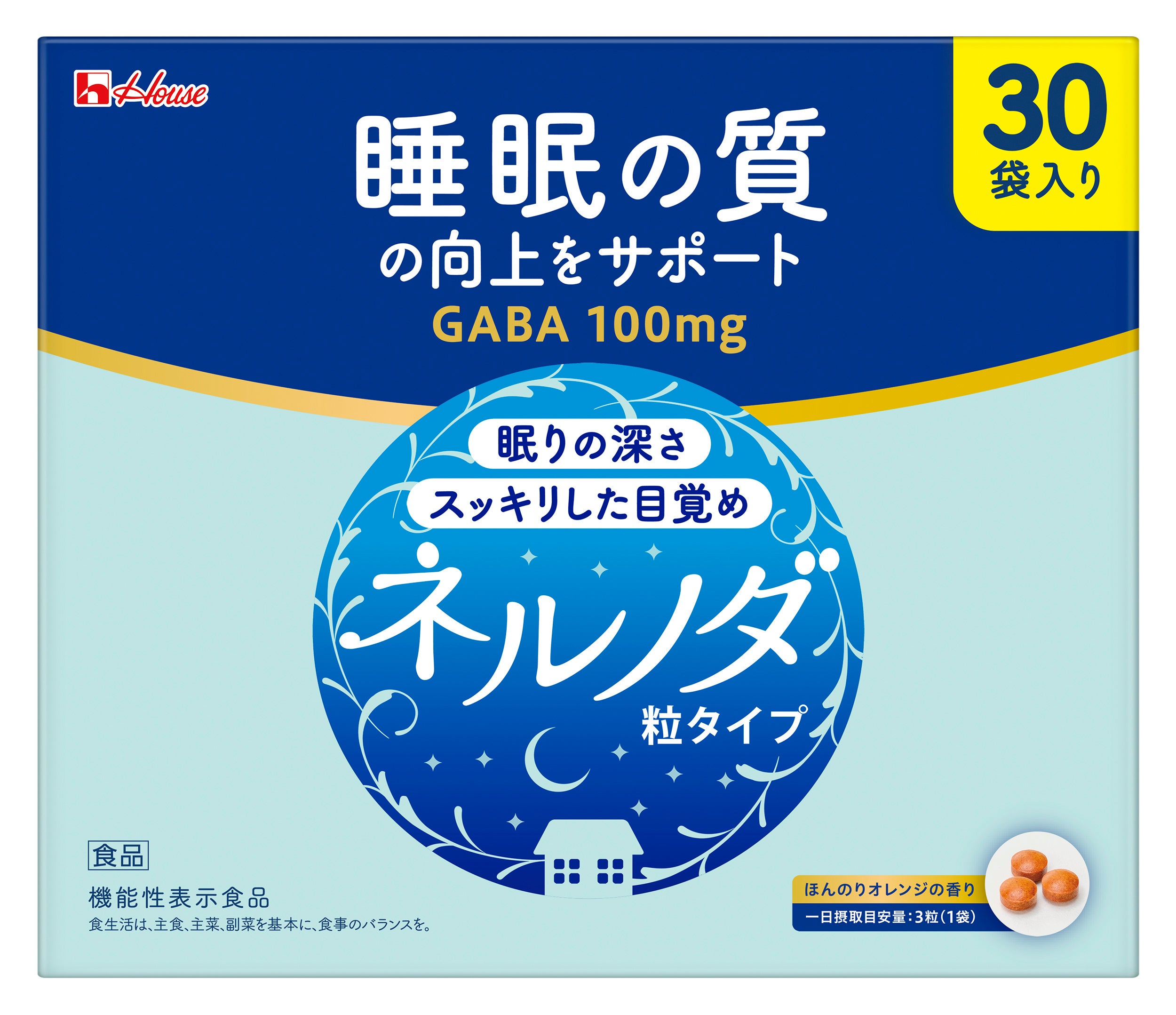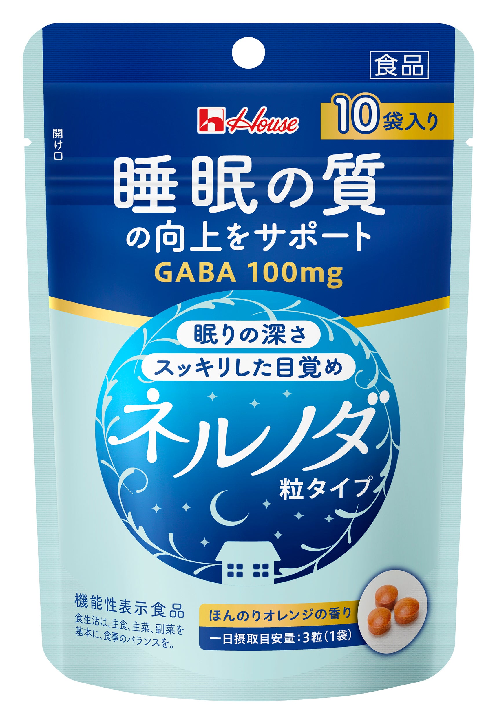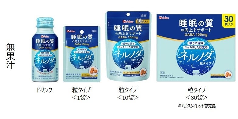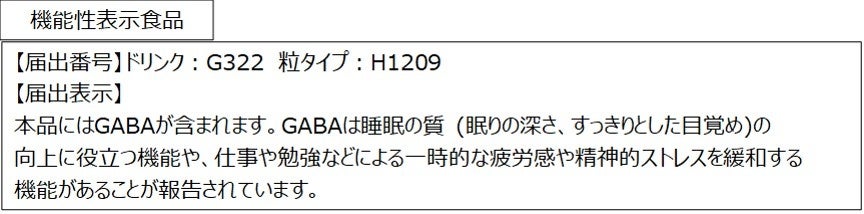 「ネルノダ」シリーズは、睡眠の質(眠りの深さ、すっきりとした目覚め)の向上に役立つ機能があることが報告されているGABA100㎎(一日摂取目安量あたり)を配合した機能性表示食品です。ドリンクタイプは、すっきりオレンジ味で飲みやすく、100mlの小容量サイズ。(無果汁)粒タイプは、持ち運びに便利な個包装になっています。