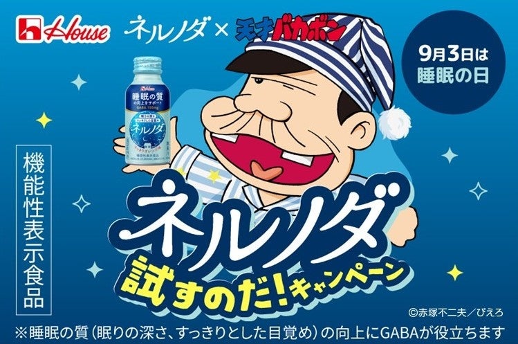 9月3日は秋の睡眠の日!国民的アニメ『天才バカボン』と「ネルノダ」がコラボ!『ネルノダ試すのだ!キャンペーン』