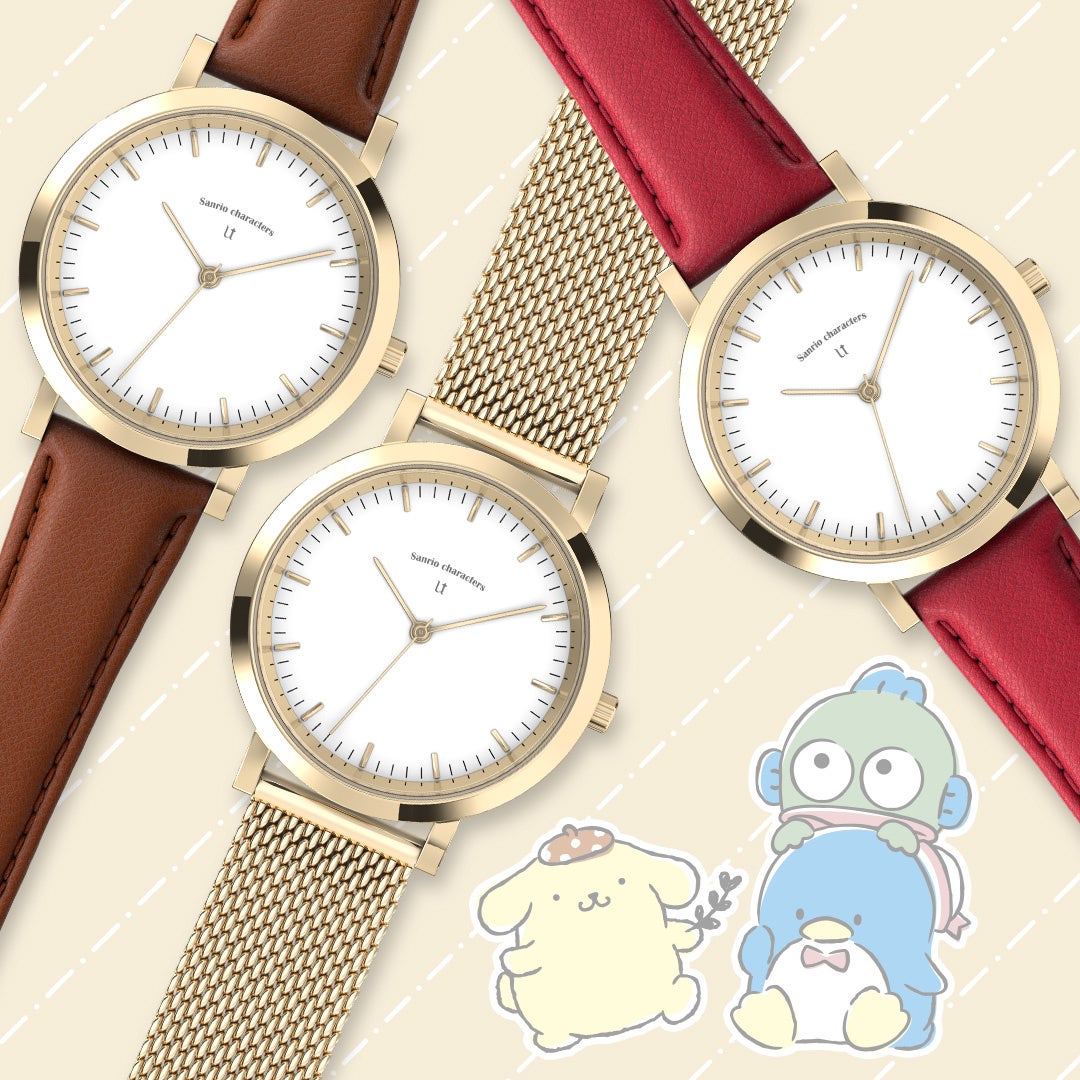 ケースの色やベルト、裏蓋のマークがカスタマイズできる腕時計。裏蓋にはお好きなサンリオキャラクターズのマークを全17種類から選択できます。大好きなキャラクターや世界観を、いつでもそばに感じられますように…。カジュアルからビジネスシーンまで幅広く使いやすい仕様です。
