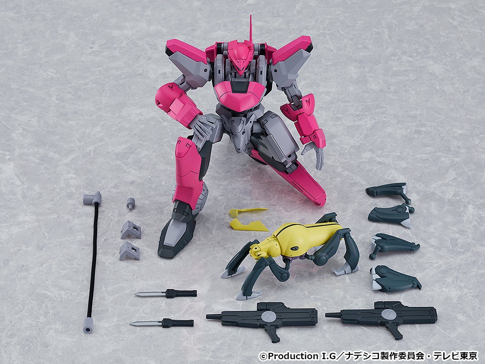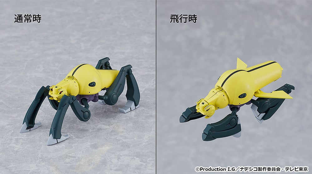陸戦フレームとの対決シーンはもちろん、バッタ本体はパーツ差し換えにより飛行形態も再現可能。