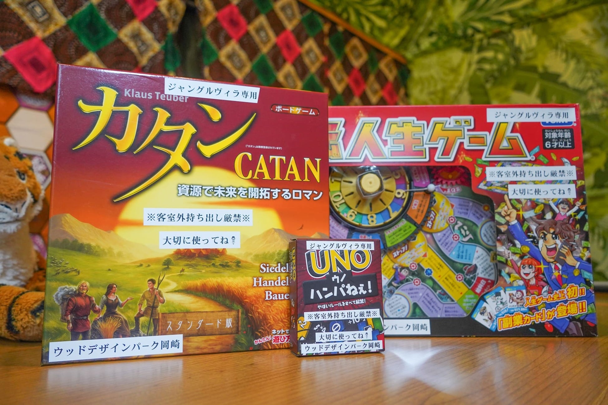 団らんヴィラには、ジャングルヴィラ専用のボードゲームやカードゲームがついております。
