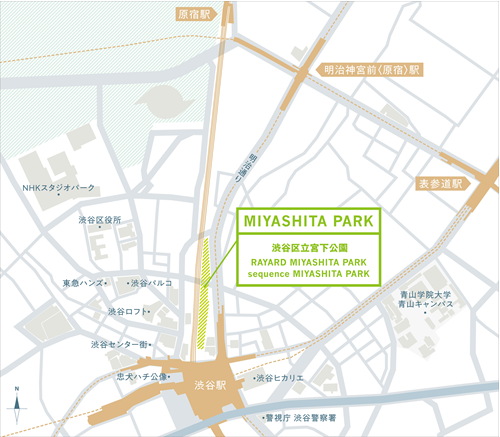 | 街区・施設名称 | MIYASHITA PARK 公園 渋谷区立宮下公園 商業施設 RAYARD MIYASHITA PARK ホテル sequence MIYASHITA PARK |