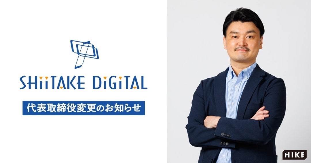 株式会社HIKE(本社:東京都新宿区、代表:三上政高、以下「HIKE」)は、2024年1月19日付けで子会社である株式会社しいたけデジタル(本社:東京都渋谷区、以下「しいたけデジタル」)の代表取締役に、堀口広太郎が就任したことをお知らせ致します。なお、これに伴い宮武徹夫と三上政高が、しいたけデジタルの取締役に就任致します。