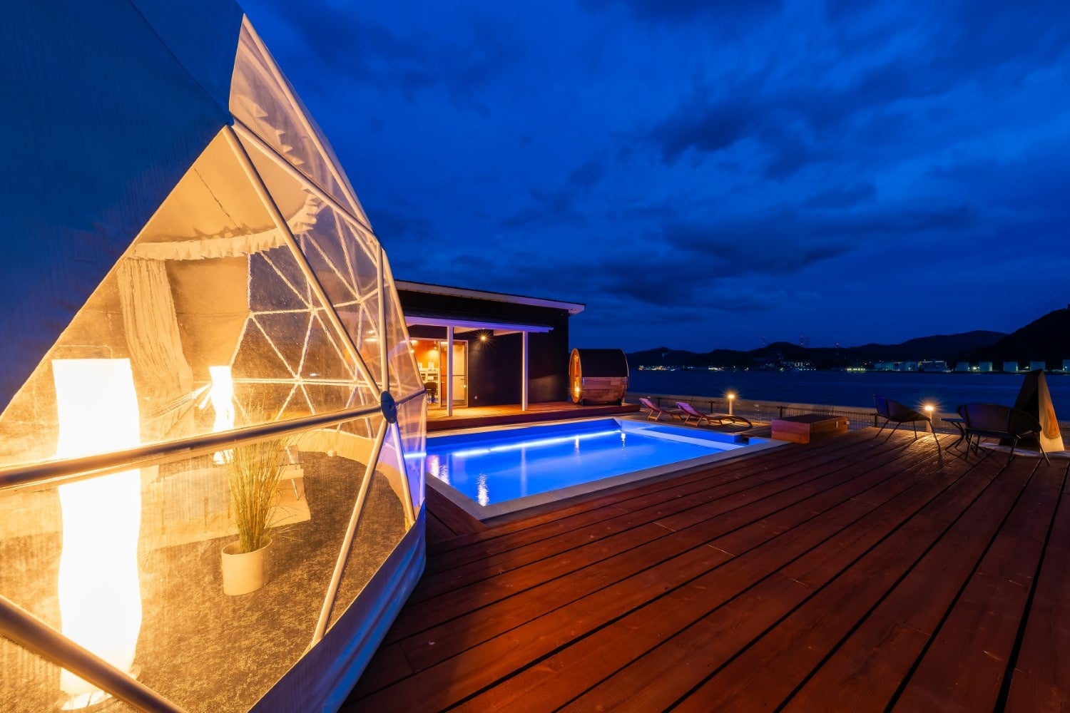 【2024年11月リニューアル】広がる海と関門海峡を見渡す絶景グランピングリゾート「グランドーム下関」に新たにプライベートサウナ付きの客室が誕生!~絶好のロケーションで最高のととのい体験を~