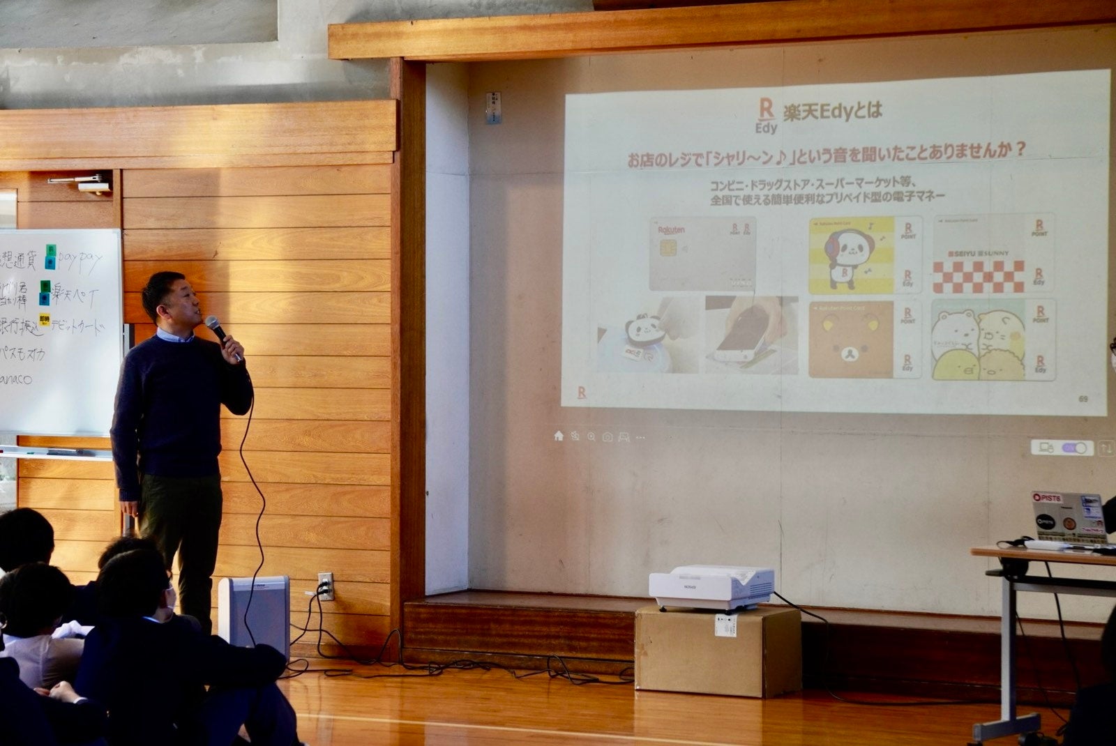 当日は、楽天ペイメント社員が講師として登壇し、「楽天Edy」をはじめとしたキャッシュレスの仕組みや決済方法などの基本的な情報から、キャッシュレスの利便性や価値、留意点や今後の社会の変化等、キャッシュレスに関する様々なテーマについて授業を行いました。