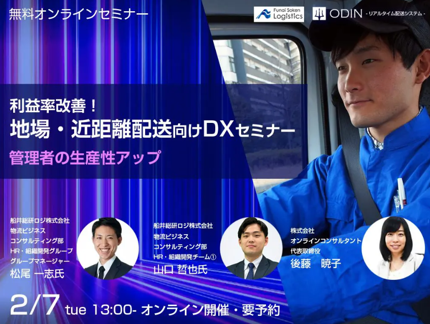 【セミナーレポート】2/7開催 地場・近距離配送向けDXセミナー(株式会社オンラインコンサルタント様主催)にて、船井総研ロジのコンサルタントが講演しました|船井総研ロジ株式会社
