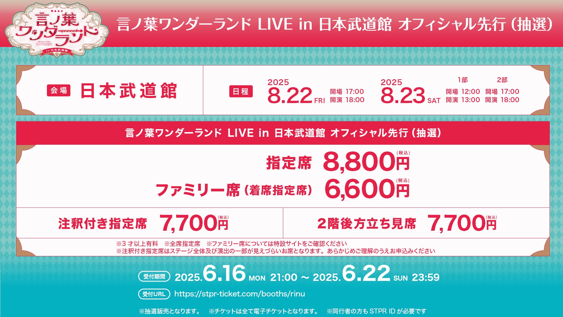 ― 『言ノ葉ワンダーランド LIVE in 日本武道館』 2025年8月22日(金)・23日(土)開催 ―