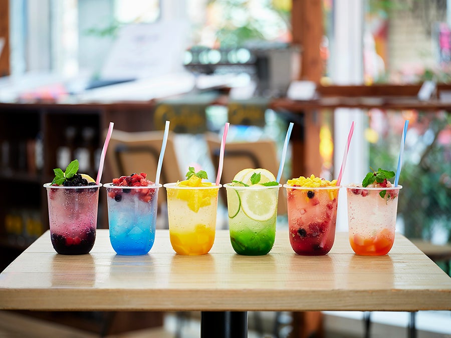 「万博酢ワー」とは、今夏大阪ミナミで楽しめる暑い夏にぴったりなビネガードリンクです。お酢に果実を漬け込んで作るサワードリンクから着想を得て開発し、さっぱり楽しめる甘酸っぱい味わいになっています。