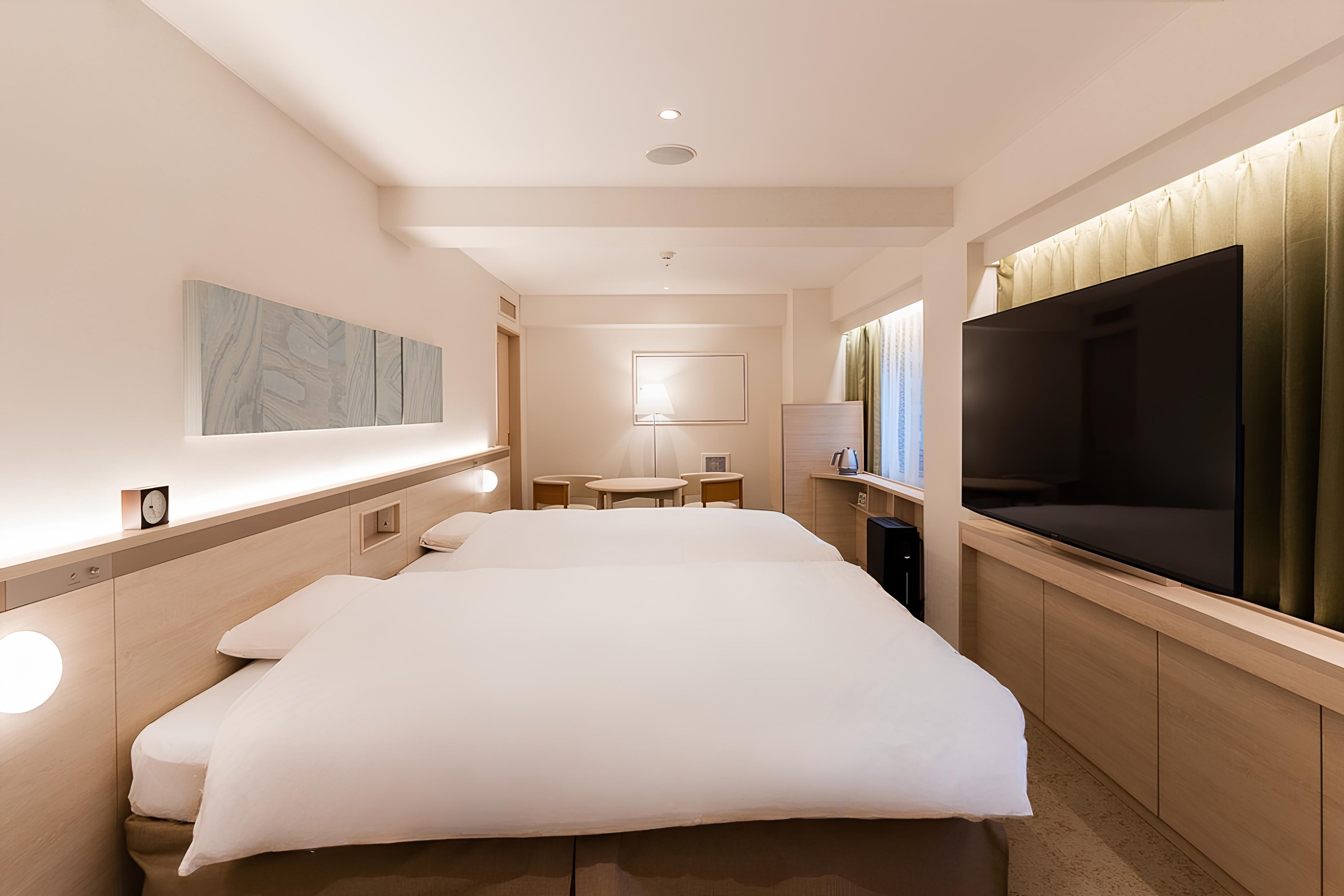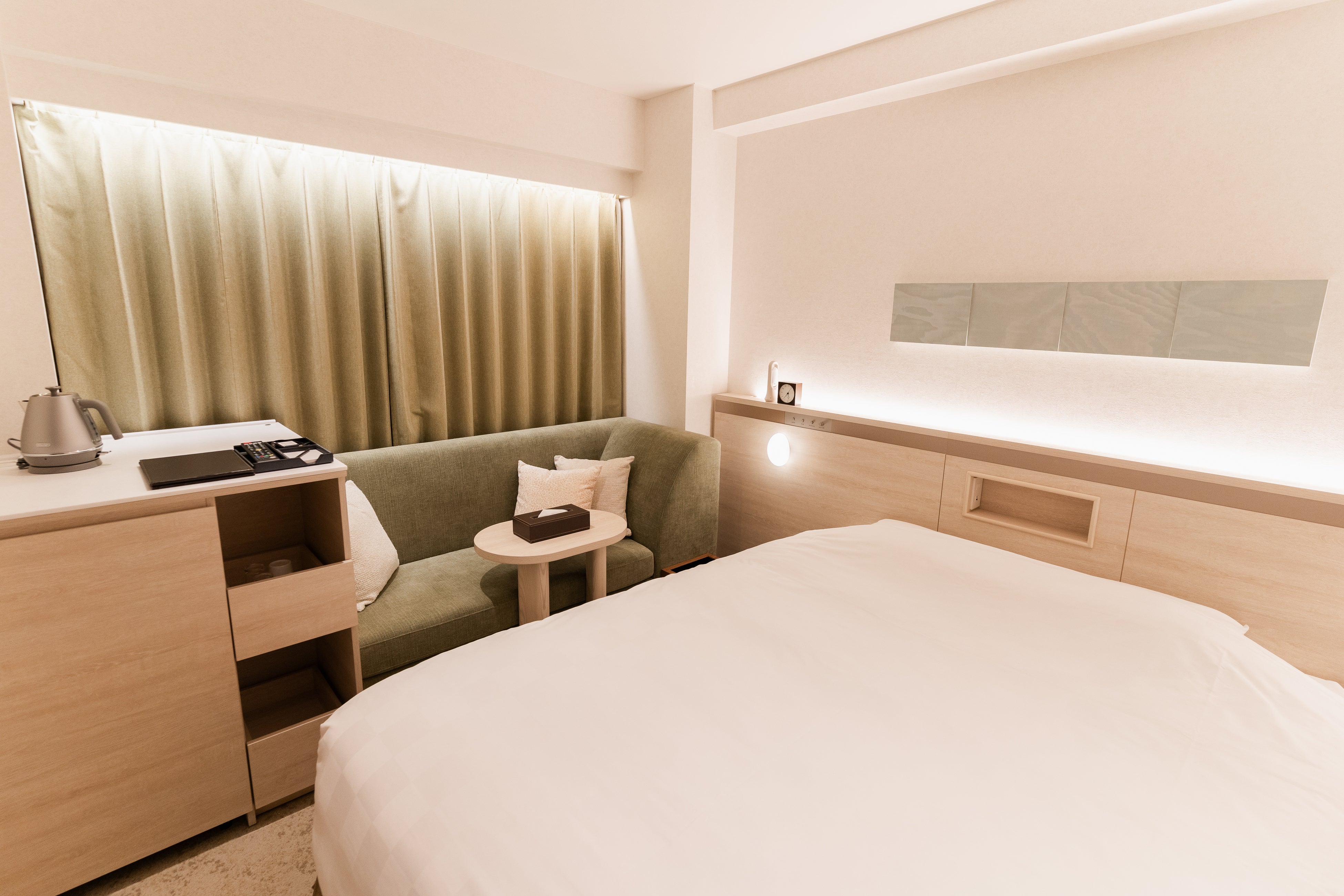 34㎡のコンパクトな空間でありながらも快適性にこだわった「Saunaダブルルーム」は、1名様または2名様での滞在にぴったりの空間です。サウナのあとのリラックスタイムには、湯船でゆったりと温まりながら、日々の疲れを癒していただけます。
