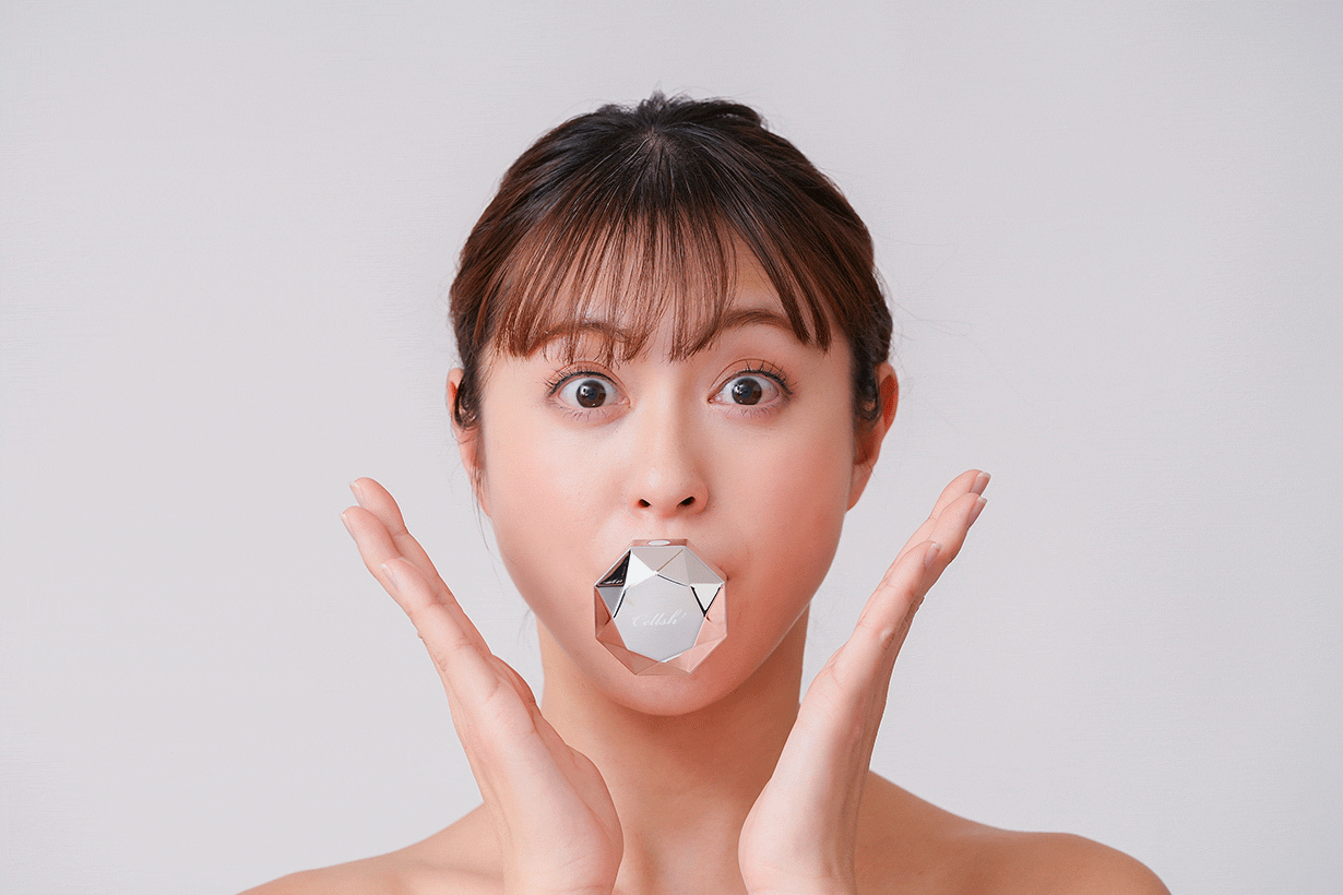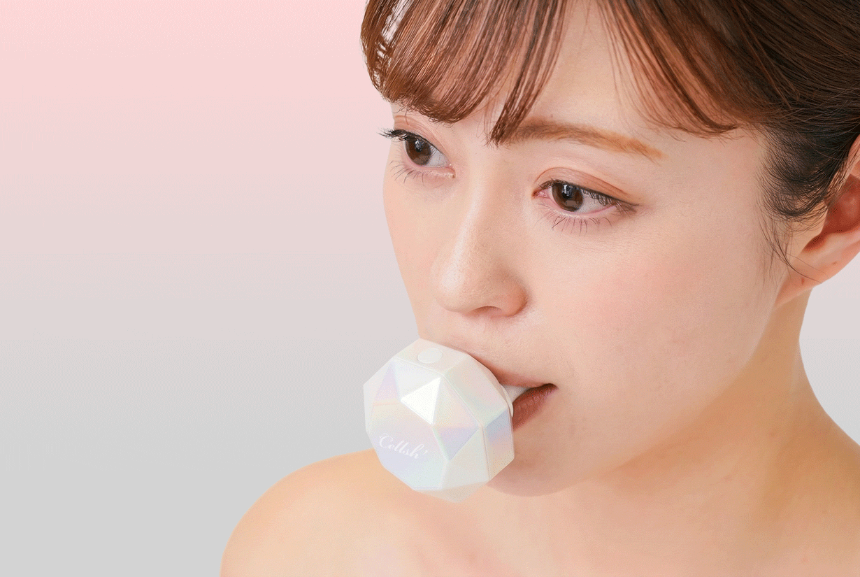「Cellsh クリスタルリップ」は、唇でくわえて振動させることで口元まわりの筋肉を心地よく刺激する新発想のフェイスエクササイズアイテムです。