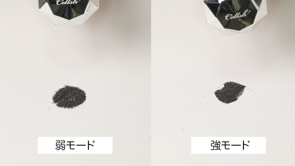 ボタン操作で弱・強を切り替え可能。