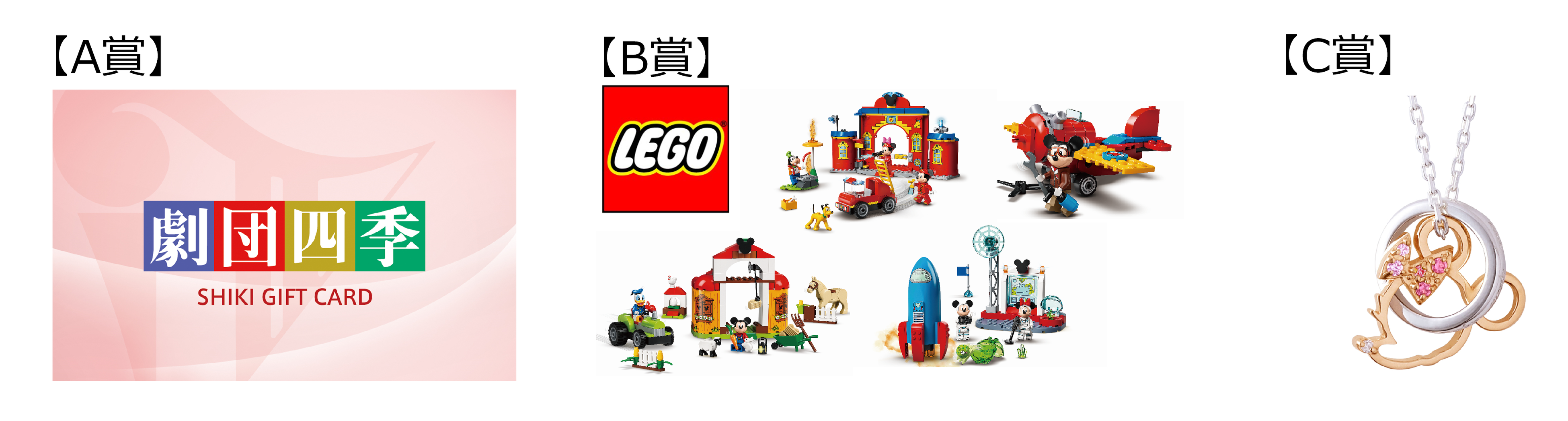 【賞 品】 劇団四季ギフトカードを含む6種類のディズニー関連賞品を抽選で合計3,000名様にプレゼント
