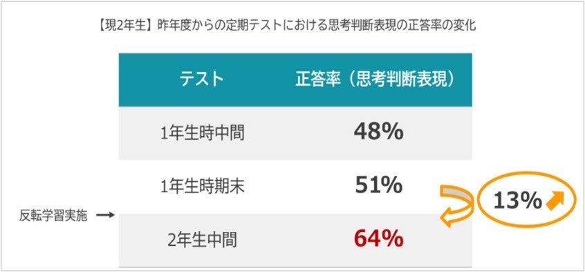 国語での反転学習により、思考判断表現の正答率アップ。自己肯定感の向上にも寄与